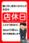誠に申し訳ございません。本日は【店休日】とさせて頂きます。